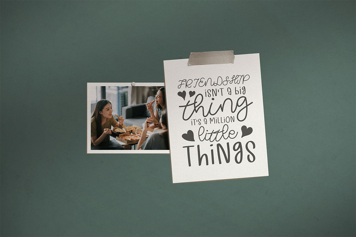“Friendship isn’t a big thing. It’s a million little things.“ quotes, font used: Little Things by Sweet Vibes